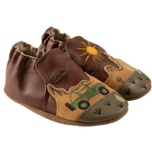 Brown leather desert theme soft sole. Featuring a suede bottom & room to grow, they’re flexible with movement & non-constricting for better balance and stay on, play on power.