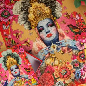Fiona Hewitt’s retro style draws on a variety of sources, including propaganda, vintage ephemera and most recently the iconography of the Indian sub continent and the theme of the modern goddess. Travel has been a major inspiration throughout her work, most specifically the four years she spent living in Hong Kong, Beijing and Shanghai where she was first introduced to the wonders of lantern festivals, flea markets, 1960’s toys and communist China. These passions and obsessions have inspired some of her best known work; the Asian inspired beauty brand Miso Pretty (for Blue Q) and the 1950’s, Asian, kitsch creations she made for her own company Wu & Wu.