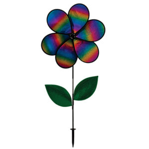 The 19″ Rainbow Whirl Flower Spinner is designed to spin effortlessly in the breeze. Made with quality Mylar material, the blended rainbow spectrum of colors sparkles brilliantly in the sun.