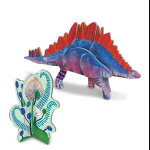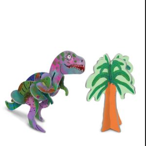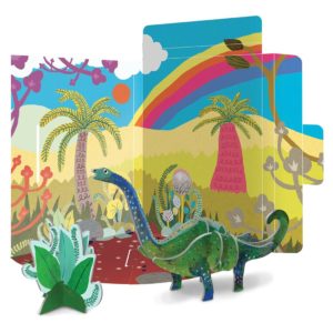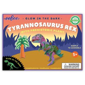 Simple to assemble, this 3-D dinosaur figure, constructed from sturdy cardboard, comes with a 3-D prehistoric plant and clever packaging that folds open to create a prehistoric backdrop for imaginative play. To add to the fun, this dinosaur has a glow-in the-dark skeleton that appears when the lights go off!