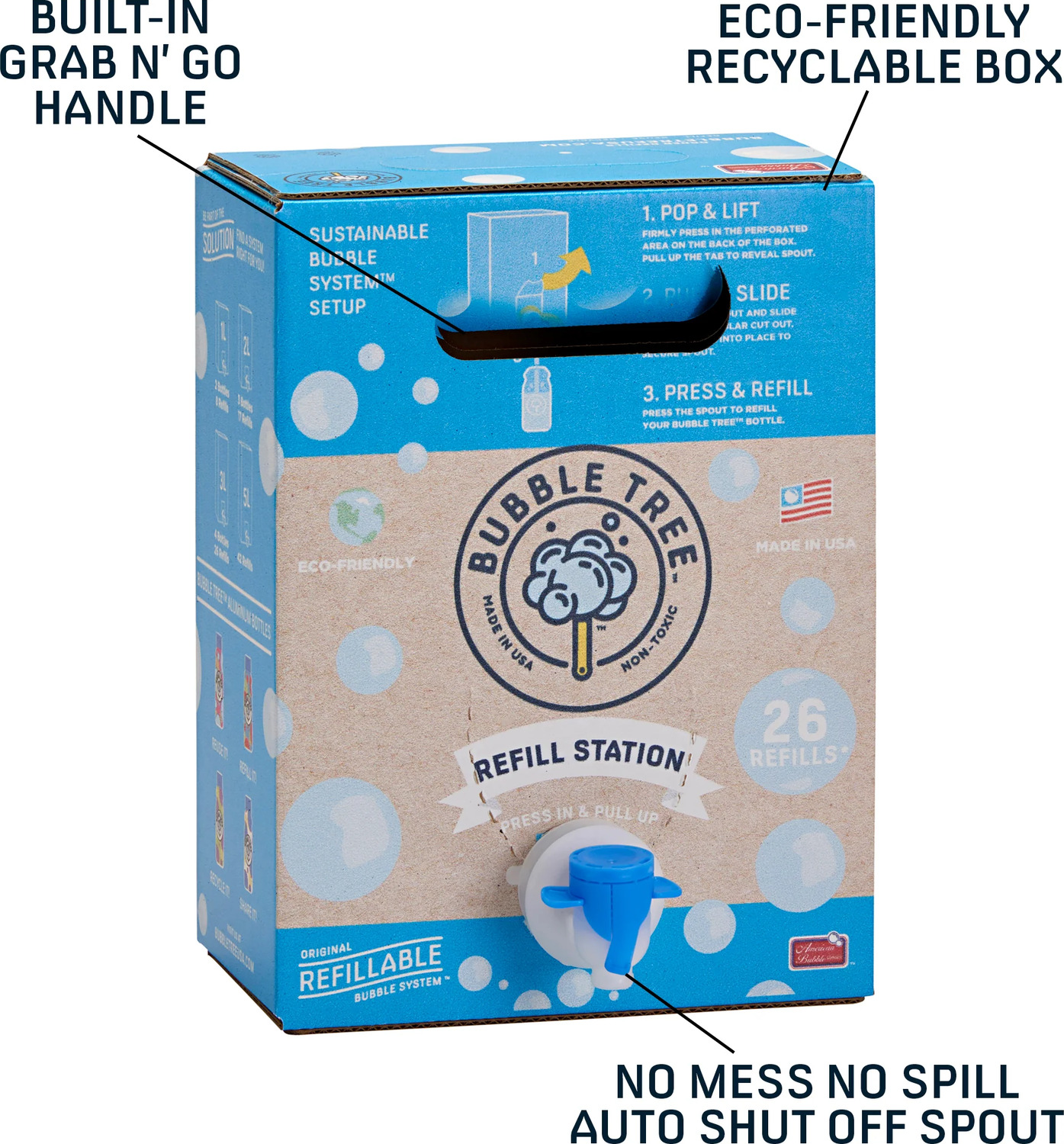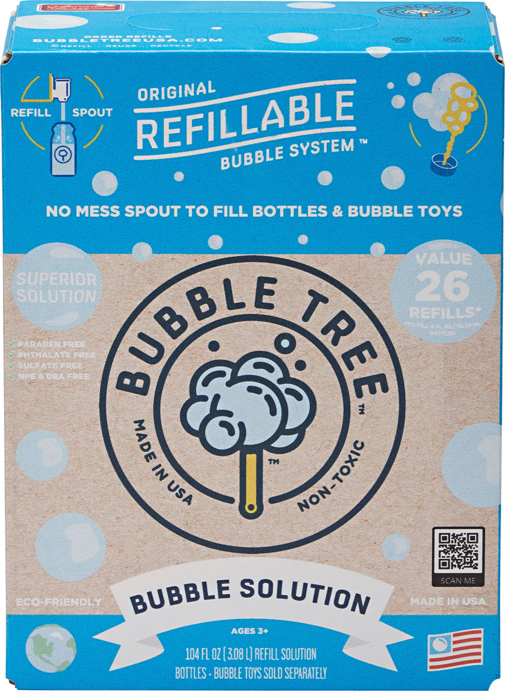 Use all year around. Bubble Tree Original Refillable system is not just safe for the environment but safe for you too. Get rid of one time use plastic bottles. Reuse! Refill! Recycle and Share! This item features 3 Liter of eco-friendly superior bubble solution.
