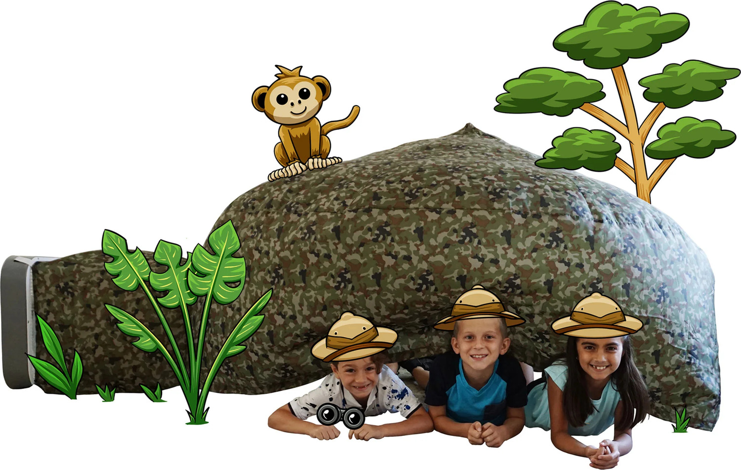Grab your safari hat because into the jungle we go! The Jungle Camo AirFort will have you feeling like a true jungle animal as you roam around with all the other monkeys, tigers, and snakes! The classic AirFort structure allows you to fill your jungle with all your favorite jungle animals!