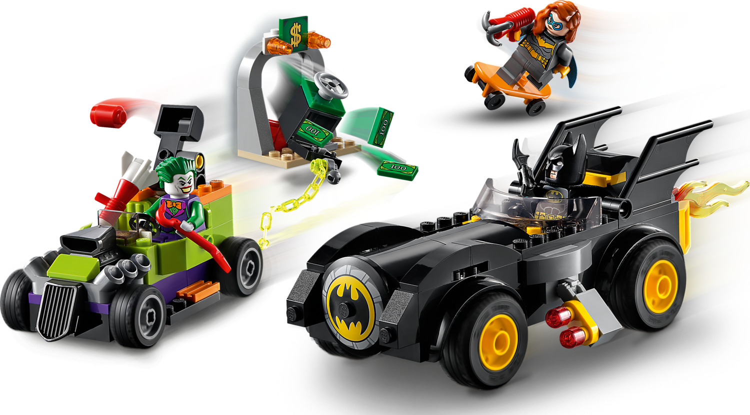 When The Jokerâ„¢ uses his hot rod to steal a bank vault full of money, kids help Batmanâ„¢ and Batgirlâ„¢ fire the Batmobile’s weapons, throw the Batarangâ„¢ and shoot a grappling launcher to stop him.