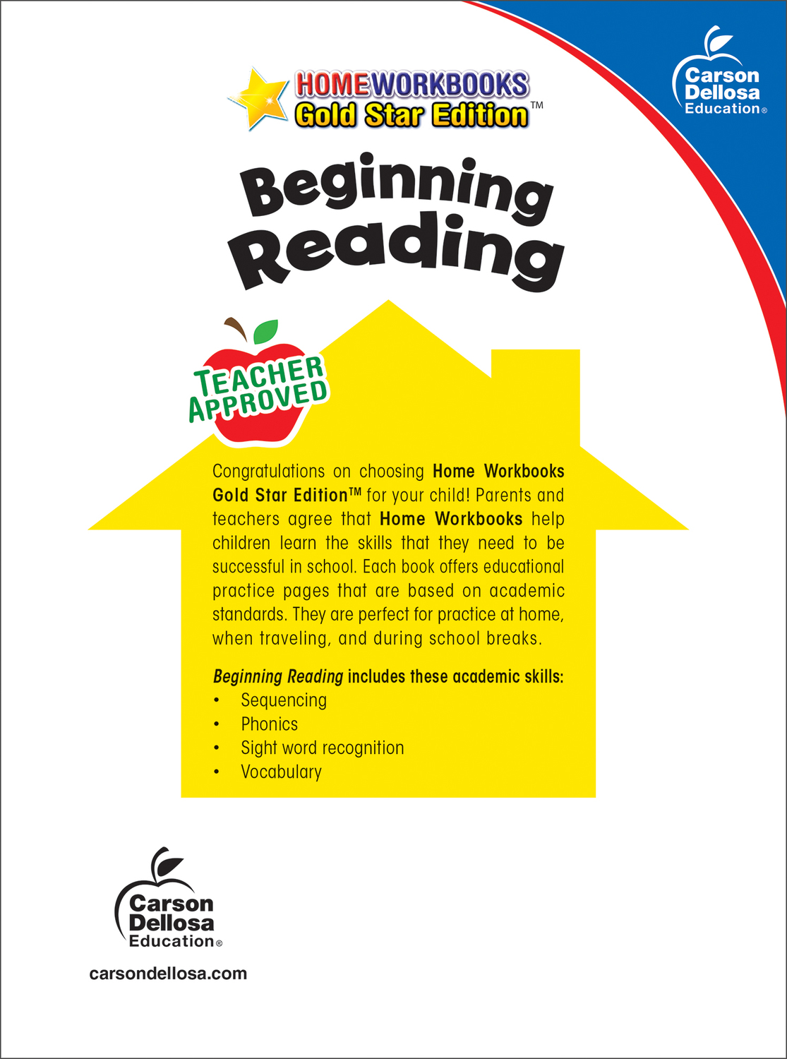 Beginner Reading Skills: Build essential reading, phonics, and motor skills for your kindergartener while having fun with Carson Dellosa’s Beginning Reading Workbook! Featuring colorful pages and art, engaging activities, puzzles, and more!