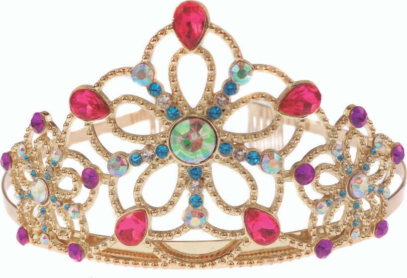 A tiara makes you feel special, adds that extra needed flare to regular school outfits. So why not go all the way! Our gold metal tiara is bedazzled with jewels and gems. Featuring faux rhinestone and gem detailing, this gold tiara completes any princess costume or just for everyday wear depending on your princess needs.