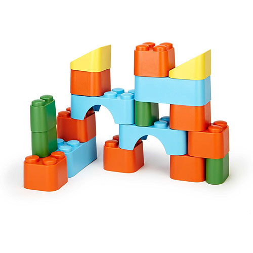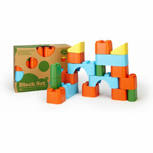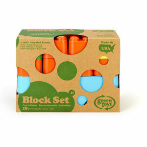 The Green Toys Block Set is the world’s most environmentally friendly basic building set — and now it’s better than ever! The 18 boldly colored, lightweight blocks have been re-engineered for easier grip and better stacking action. This unique block set includes a variety of shapes for building castles, towers, or any imaginative structure budding architects can dream up. Plenty of Good Green Fun. Color combinations may vary.