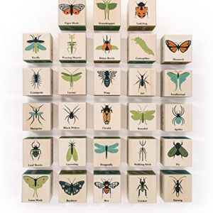 If you think bugs are ugly, take a closer look. One side of each block reveals a detailed close up of the insect featured on its opposite side. Colorful Art Nouveau upper and lowercase letters grace the remaining four sides. Explore patterns + etymology in a block set where nature meets design. This set is a companion to our Flower, Bird, and Ocean block sets.