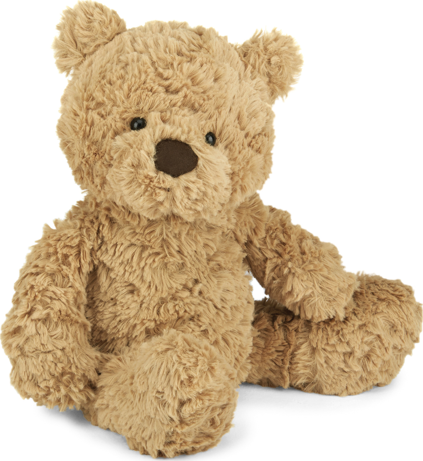 A sandy, dandy teddy, Bumbly Bear is simply scrummy. A ruffly, fluffy fellow with an extra-long snout for vintage style, he’s a classic bear with a modern twist. His large head and tummy and chunky feet make him just the chap for bedtime hugs. With those tufty ears and that chocolate-drop nose, he’s a bear necessity!