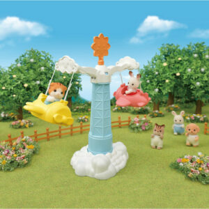The base of this fun ride is shaped like a cloud, and the top portion of the pole comes with a sun decoration, giving the impression of soaring in the sky above the clouds.Play alongside Baby Ferris Wheel, and create an amusement park for babies with plenty of fun rides (sold separately).