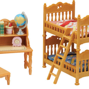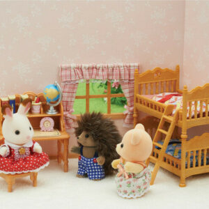Books and a globe come included, and the globe can be spun around. The shelving on top of the desk can be removed to create a more simple desk. Combining with other figures and furniture sets from the children’s room series allows for even more enjoyable pretend play (sold separately).