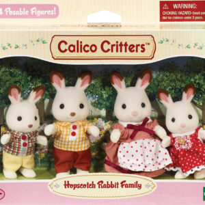 CALICO CRITTERS – Hopscotch Rabbit Family. The Hopscotch family enjoys a very active lifestyle. Mother Heidi is a gym teacher at the Cloverleaf Corners high school and Father Harlin is a sports reporter for the local paper.
