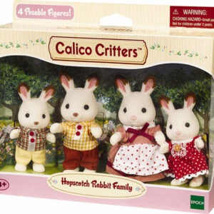 CALICO CRITTERS – Hopscotch Rabbit Family. The Hopscotch family enjoys a very active lifestyle. Mother Heidi is a gym teacher at the Cloverleaf Corners high school and Father Harlin is a sports reporter for the local paper.
