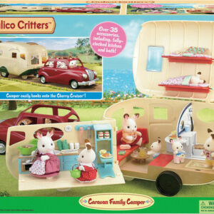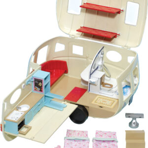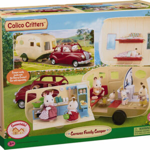 | Features | Take a Family Trip in this spacious toy vehicle with real rotating tires Caravan includes 35 accessories including a fully stocked kitchen and bathroom Open the roof of the caravan to find two bunks for sleeping, and open the side to reveal a spacious kitchen, living area and bathroom Connectable with the Calico Critters Cherry Cruiser and Family Seven Seater vehicles Encourages imaginative and pretend play and suitable for children ages 3 and above |