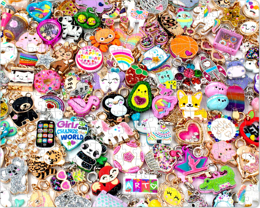 It’s charm party puzzle and she’s invited to put all the pieces together! Show off those skills and reveal an epic image of the most-loved CHARM IT! charms! Bonus collector’s guide inside to see even more charms and keep track of her collection.