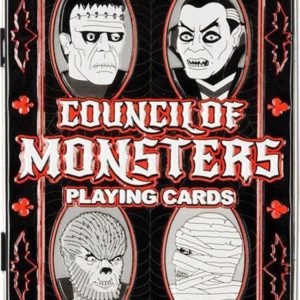 If you love monsters as much as we do, this deck of Council of Monsters Playing Cards will haunt your dreams — in a good way. This is the official card deck of the Council of Monsters. A vampire, werewolf, mummy and monster got together and formed a club to come up with monster bylaws, certifications and conventions. These beautifully illustrated cards have unique face cards, a different monster for every suit and two jokers that are sure to please anyone who loves monsters. Illustrated tin.