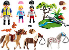 Trot out on a new adventure with the country Horseback Ride. Be sure to let the ponies take a break at the stream while you watch the opossums, groundhog, and squirrels scurry about. Set includes three figures, three ponies, stream with tree, squirrels, opossums, groundhog, and other accessories.