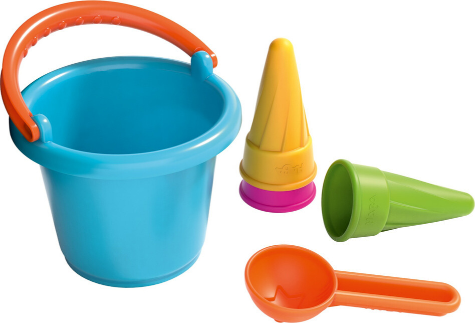 HABA Sand Toys Ice Cream Set – 5 Piece Bundle with Plastic Pail, 3 Cones & Scoop Sized Just Right for Toddlers