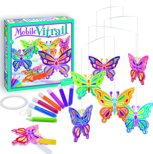 Thanks to this kit, young children will create their stained glass by injecting their chosen colours into the decorative frame mountings. A few hours later, the elements will be dry and crystal clear, ready to be suspended as a mobile, revolving and displaying a thousand reflections.
