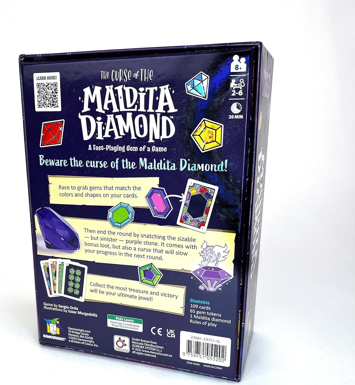 Beware of the cures of the Maldita Diamond! Race to grab the gems that match the colors and shapes on your cards. The end the round by snatching the sizable – but sinister – purple stone. It comes with bonus loot, but also a curse that will slow your progress in the next round! Collect the most treasure and victory will be your ultimate jewel!