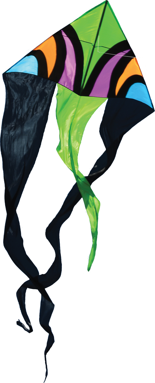 This massive Dashiki 77″ Wave Delta Kite is a wonder to behold in the sky! Despite its size, this kite goes up with ease and flows effortlessly in the breeze. This bold and colorful kite is fun for the whole family!