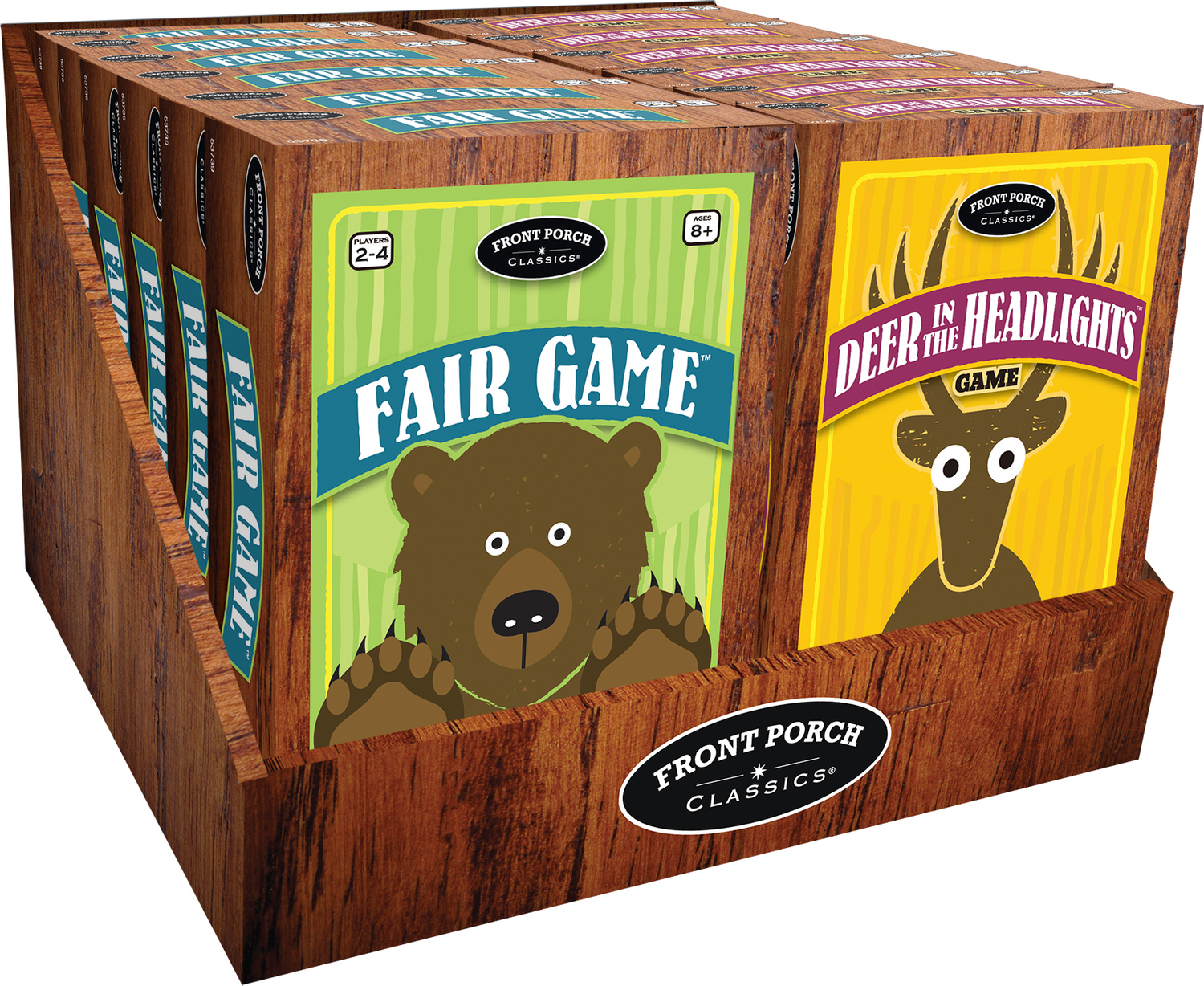 Be the first to discard all of your cards and win the round, but watch out! A “Deer in the Headlights” roll will stall your progress. Roll a “Car” or “Running Deer” and dump cards on your opponents. The first player to discard all of their cards wins the