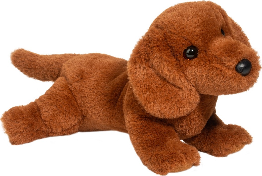 Quite possibly the softest hound dog we’ve ever met, Delanie the Soft Dachshund stuffed animal will have you howling with happiness! His rich, russet colored coat is depicted with irresistibly soft plush materials that are a dream to pet and cuddle. True to his breed, Delanie features a long back and four stout legs for an authentic weiner dog appearance. Soulful brown eyes will have dog lovers enthralled, while his slouchy, huggable body will earn a permanent place in their arms. Make Delanie the Dachshund plush your own and you’ll always have a friend to keep you company!