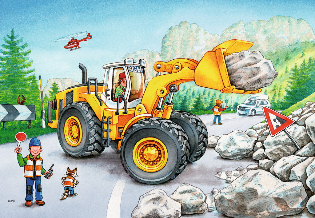 2 x 24pc Puzzle Preschoolers love puzzles! Two puzzles for twice the fun! These puzzles include mini posters for image reference and patterned back sides for easy separation. We have created the perfect selection for your pint-sized puzzlers, featuring engaging designs and Ravensburger’s high-quality, child-friendly formats. Assemble the pieces to reveal our favorite construction vehicles hard at work on the site. Ravensburger 2 x 12 and 2 x 24 piece Puzzles are a fun way to train recognition, logical thinking, patience, and hand-eye coordination. Puzzle difficulty when chosen correctly, strengthens your child’s self esteem and short term memory while having fun! Since 1891 we’ve been making the world’s finest puzzles in Ravensburg, Germany. Our attention to detail has made Ravensburger the world’s greatest puzzle brand! We use an exclusively developed, extra-thick cardboard combined with our fine, linen-structured paper to create a glare-free puzzle image for a quality you can see and feel. Our steel cutting tools are designed and crafted by hand. This ensures that no two pieces are alike and guarantees a perfect interlocking fit. Enjoy Ravensburger quality with this family-friendly activity today! Since 1891 we’ve been making the finest puzzles in Ravensburg, Germany. It’s our attention to detail which makes Ravensburger the world’s greatest puzzle brand! We use an exclusively developed, extra-thick cardboard and combine this with our fine, linen-structured paper to create a glare-free puzzle image for a quality you can feel. Our steel cutting tools are designed and crafted by hand. This ensures that no two pieces are alike and guarantees a perfect interlocking fit.