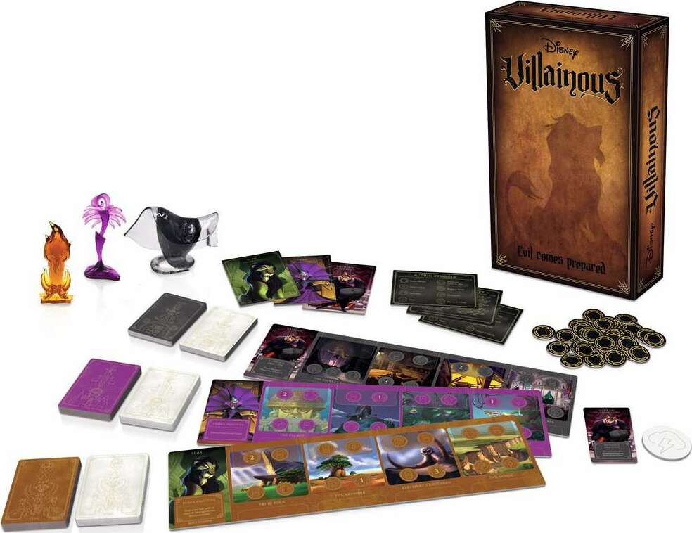 Villainous game: Evil Comes Prepared take on the role of a Disney villain striving to achieve your devious objective. Discover unique abilities while dealing twists of fate to your opponents. Who will triumph in this contest of sinister power?