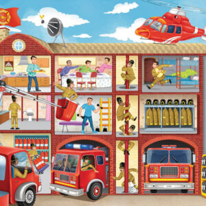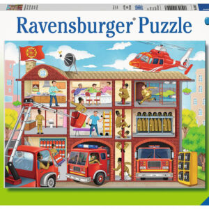 100 pc Puzzle Ravensburger has the perfect puzzle for your child! Ravensburger has something for every young puzzler with a wide range of characters, images, and designs to choose from. Assemble 100 pieces to reveal a firehouse full of firepeople preparing to report for duty! With strategically chosen images and sturdy pieces designed to challenge puzzlers ages six and up; Ravensburger’s 100-piece puzzles are a great way to sneak some unplugged play into your child’s day. Puzzling is the perfect way to spend time together, building relationships and making memories that last a lifetime. Puzzling also develops fine-motor skills, hand-eye coordination, memory, focus, and concentration skills. Puzzles build confidence one piece at a time. Ravensburger puzzles are designed to be a positive experience. Following with tradition, our puzzle dies are completely hand made from the grid design to the bending and forming of our steel tools; creating a perfect interlocking fit with no tearing or dust. No two pieces are ever the same shape! Extra-thick cardboard pieces mean your puzzle will last for years and our fine, linen-structured paper eliminates glare so you can really see the details. Ravensburger, bringing families together since 1891.