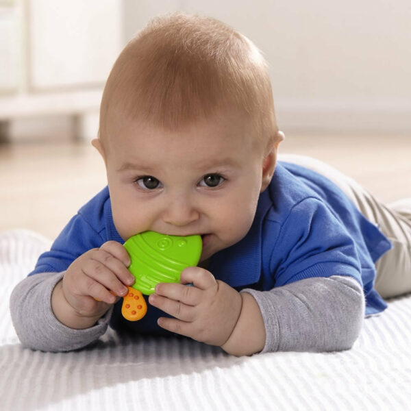 Ease those sore, tender gums with this textured cooling teether! Just Pop it in the fridge and the water inside will cool, providing an inviting place for little teethers to gnaw, grasp and explore. Made of BPA-free, Phthalate-free plastic. Measures 3.75 x 3″