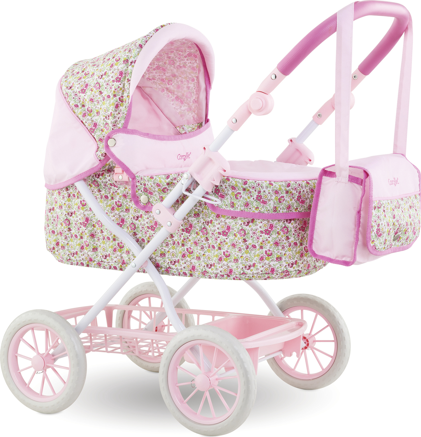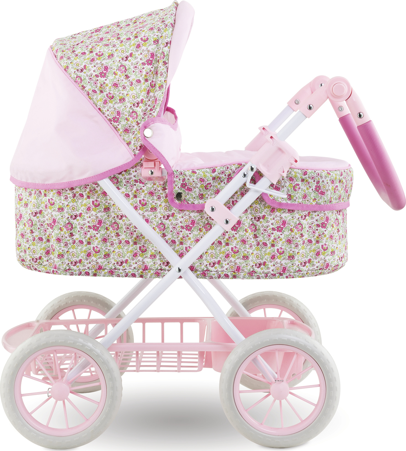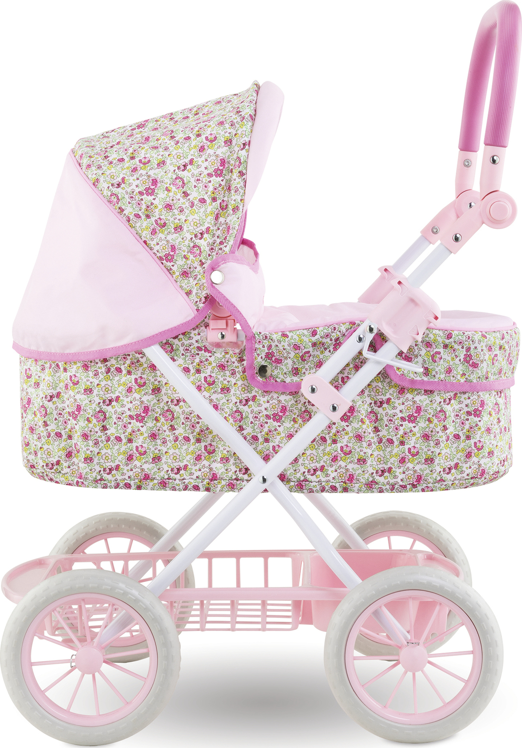 Little ones will love taking their favorite 14″ – 20″ baby doll for a stroll in style in this smartly styled carriage. Its handle height is adjustable to accommodate children as they grow, plus it has an adjustable hood, a storage basket for baby’s things, a removable bassinet cover and comes with a matching nursery bag. When playtime is over, the carriage folds flat for easy storage.Â