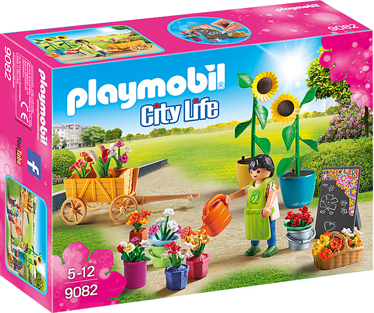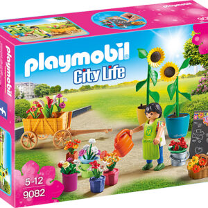 Playmobil – Florist City Life, Item 9082. Recommended age – 36 months – 5 years. The Playmobil Florist features a florist and all of his beautiful flowers to sell. The set includes lots of different flowers including sun flowers and a cart to pull them along in. Includes 1 Playmob
