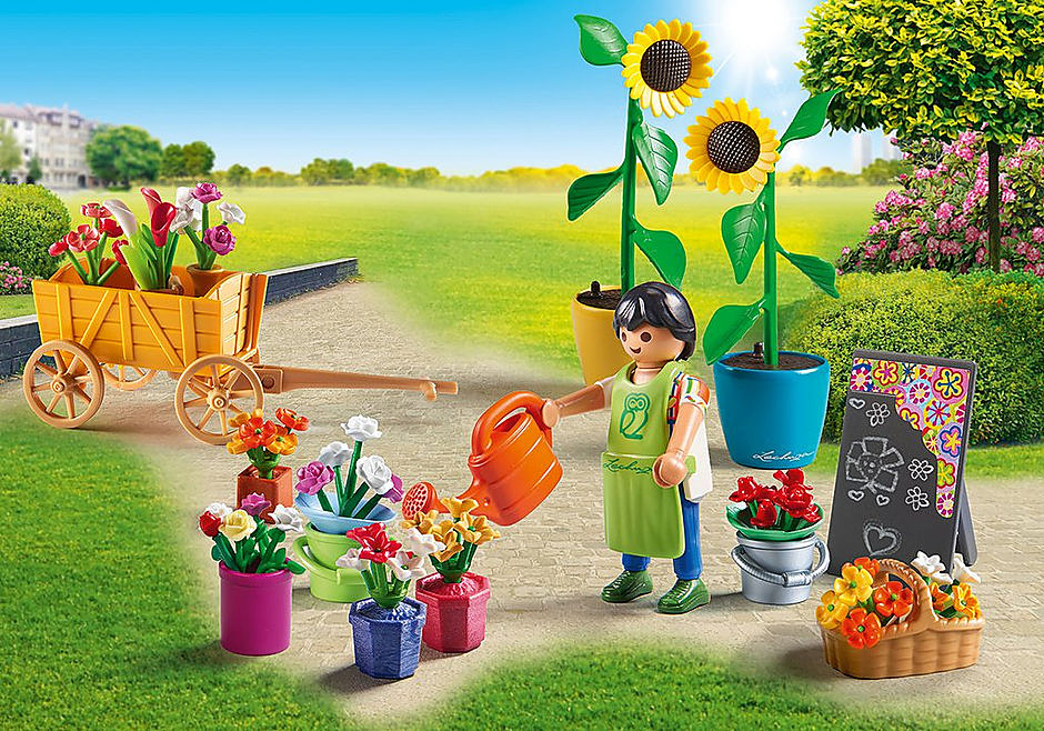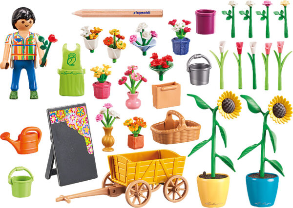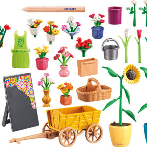 The Playmobil Florist features a florist and all of his beautiful flowers to sell. The set includes lots of different flowers including sun flowers and a cart to pull them along in. Includes 1 Playmobil figure.