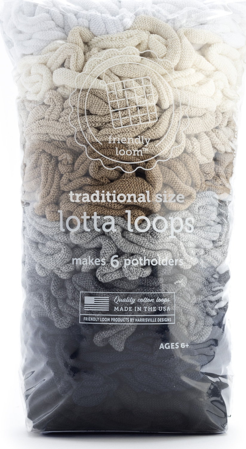 These cotton potholder loops in Nuetral color mix are custom made to fit Friendly Loomâ„¢ Potholder Loom (Traditional Size).