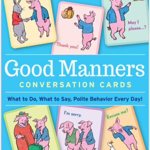 Polite pigs make manners satisfying to learn, demonstrating good behavior in familiar situations. One side of each card asks what approach or response is right for a situation; the reverse offers a good suggestion.