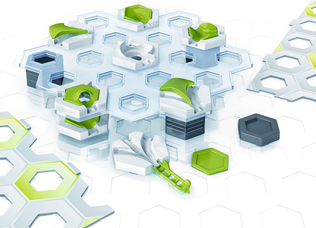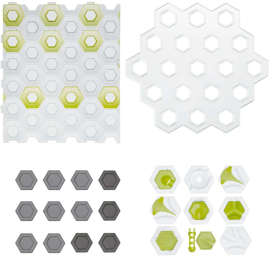 Expand yout possibilities! The Building Expansion offers over 25 additional elements to expand your track vertically. You’ll increase the action when increasing the height of your run. Experiment with the combination of height tiles, base plates, freefalls, switches and even another level. See how high you can build your track before getting the marbles to the finish. GraviTrax Starter-Set required Contents: 2 Base Plates, 1 Transparent Level, 8 Large Height Tiles, 4 Small Height Tiles, 2 Switches, 1 3-in-1 tile, 1 Vortex, 1 Finish Line, 4 Basic Tiles, inserts for basic tiles: 2 Catchers, 1 Freefall, 1 Splash, 1 Landing