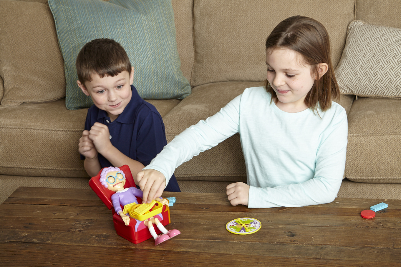 Take the treats without making a peep with Greedy Granny! Granny loves her sweets, but she’s not so great at sharing. As she snoozes, spin the treat wheel to see which sweet to swipe. Be quiet… one wrong move will wake Granny up and send her teeth flying! Be the first player to collect one of each of her treats to win. Unique gameplay with randomized action creates anticipation and excitement that is sure to bring on the giggles! Because it’s quick and easy to learn, kids can enjoy the fun payoff over and over again. Includes bright, high-quality playing pieces. No batteries required. For 2-4 players, ages 4 and up.