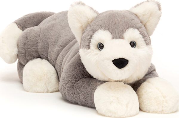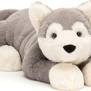 Loyal, loving and a little bit lazy, Hudson Husky is taking a break! Silvery-grey and creamy-white, with a waggy tail and tufty ears, this snowy sweetie has sky-blue eyes. Flopsy but fearless, he’s waiting for his team-mates!