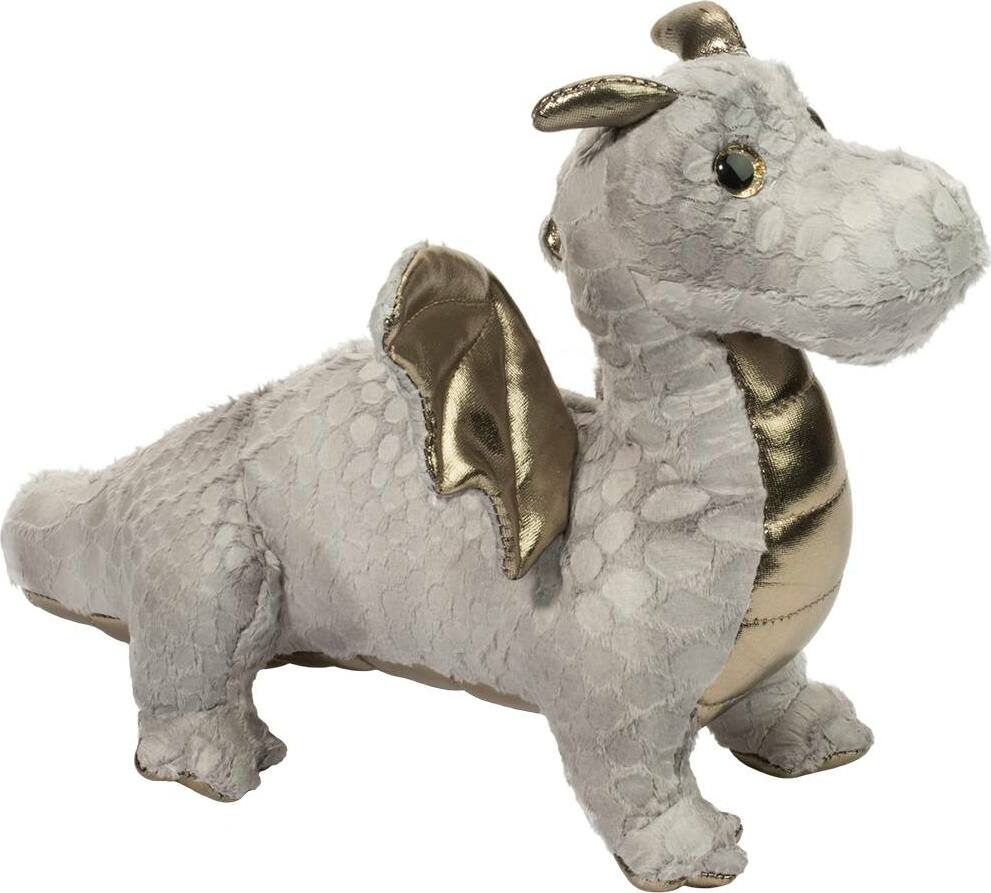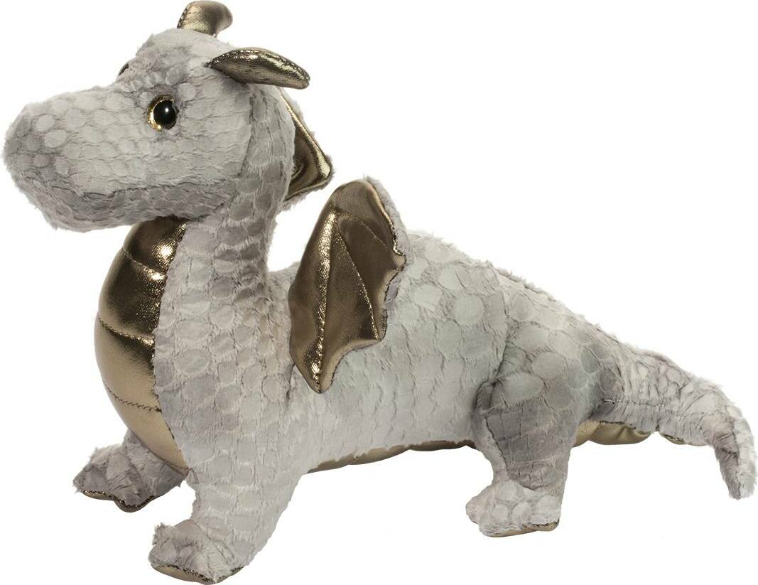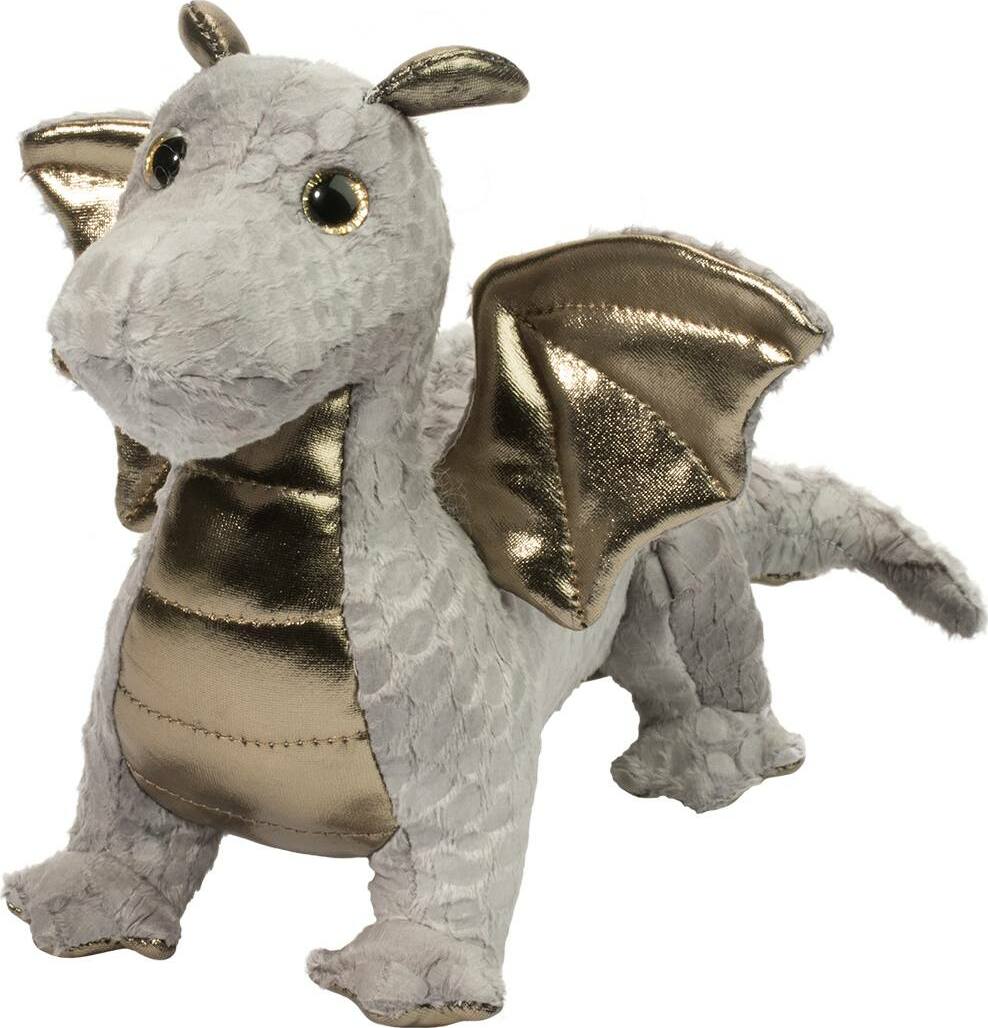 Hydra is a newly hatched Silver Dragon stuffed animal who’s eager to learn all about the world around him! There are so many things to discover and our baby Dragon’s wide eyed gaze can’t seem to take things in quickly enough! The glittery shine of his large eyes is matched by the golden glow of his wings and belly scales. A scaly texture is featured over Hydra’s pale gray body for a touch of realism. His alert stance and classic design will capture your heart and inspire a multitude of fantasy adventures. Bring home a Dragon hatchling of your very own with Hydra the plush Silver Dragon!