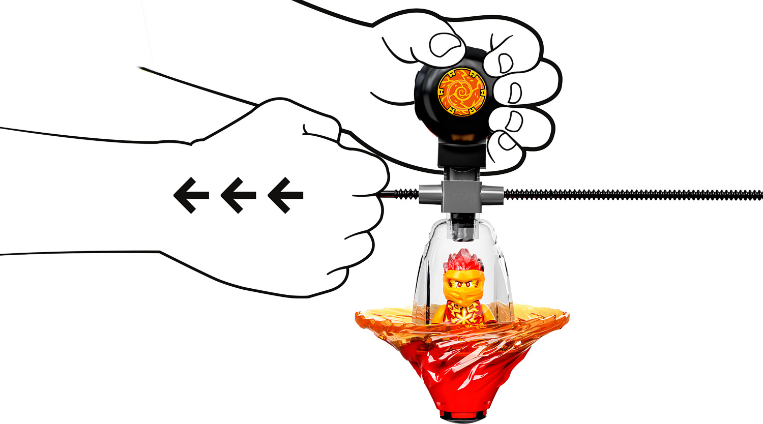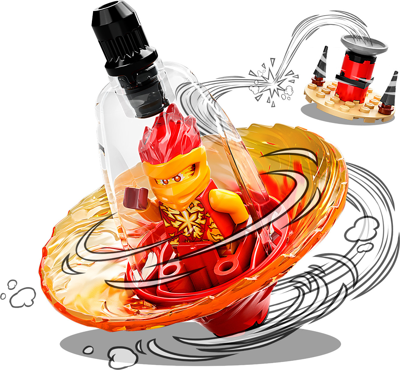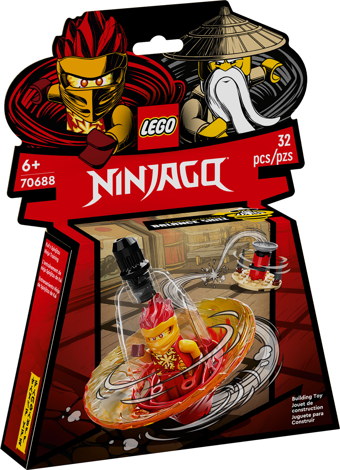 Kids will love to place Kai in the spinning toy, pull the rip cord and watch as he quickly spins on flat surfaces or high up on his balancing tower. New for March 2022, the Kai minifigure has an exclusive and never-seen-before elemental power look.