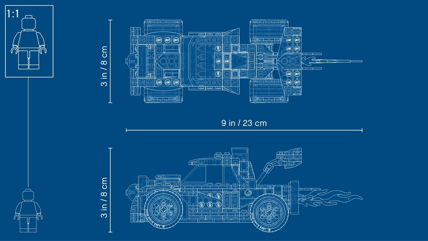 • Detailed and built for action. With the rocket truck measuring over 3? (8cm) high, 8? (22cm) long and 2? (7cm) wide, this great toy is small enough to take on the go, yet big enough to fit a minifigure (not included).