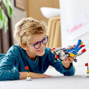 - Includes a pilot minifigure with printed flight suit and a helmet