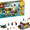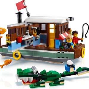 Set sail aboard the cozy LEGO® Creator 3in1 31093 Riverside Houseboat. This quirky boathouse model comes with an array of fun features, including a detailed deck area with a revolving chair, workbench and a mounted fishing rod. It also opens to allow easy access to a detailed cabin interior with a chair, bed, TV, lamp and kitchen. With Creator 3in1 sets you get 3 different build and play experiences. Build this toy boat and then rebuild it into a classic Seaplane model or enjoy waterside adventures at a Fishing Village with pier, café and fishing boat. The Houseboat includes 2 minifigures ready for adventure, plus brick-built bird, pelican and crocodile figures. Enjoy 3 building opportunities with this LEGO® Creator 3in1 set. Build the Riverside Houseboat and then rebuild to create a Seaplane with a dock and crab or a Fishing Village with a pier, café and fishing boat.