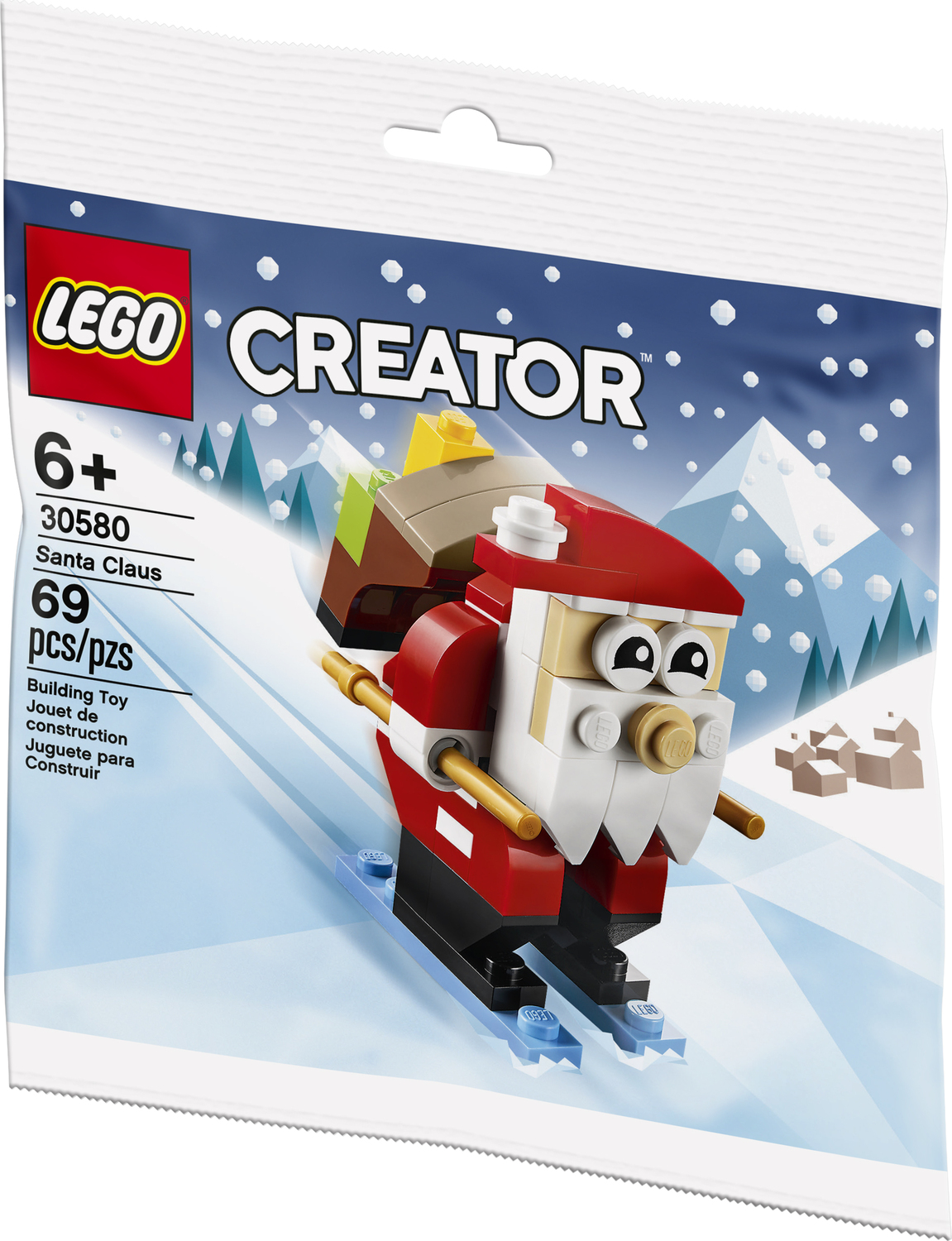 Celebrate the holiday season with this skiing Santa Claus with a toy-stuffed sack on his back, making a fun addition to any festive party.