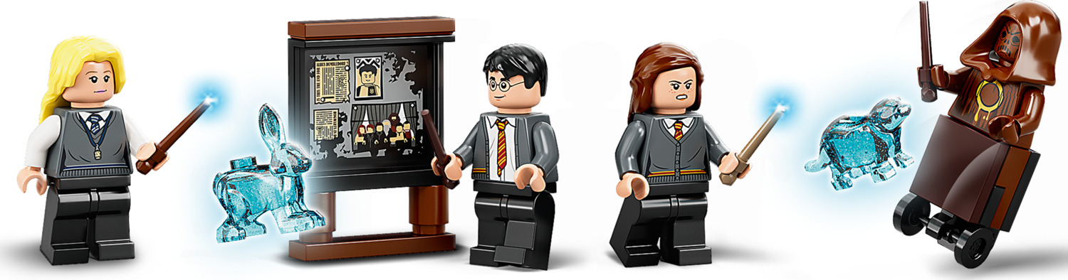 • Includes 3 minifigures with wands – Harry Potter™, Hermione Granger™, Luna Lovegood™ – 2 animal Patronuses, power shooter, dummy Death Eater and a detailed room with a pillar, board and fireplace.