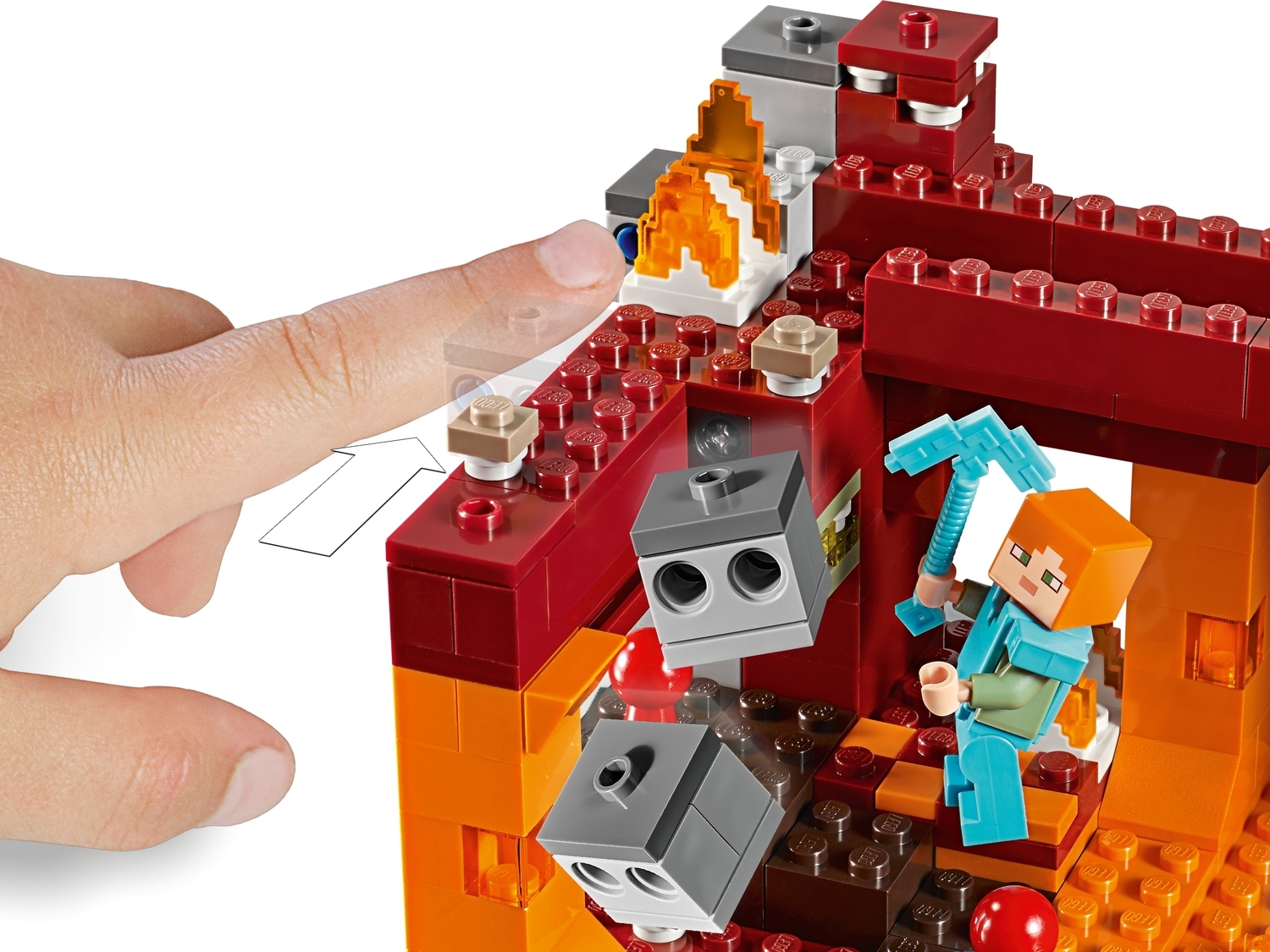 - Features a buildable Minecraft™ Nether setting with a bridge, lava, magma, soul sand, glowstone, gravel and nether quartz blocks, brewing stand, 2 potions and a chest with treasure.