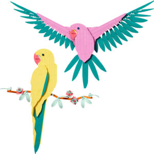 - Nature wall art – Use the set’s 644 LEGO® bricks to create a colorful scene with 2 Macaw Parrots: one perched on a flowering branch and the other in flight with spread wings