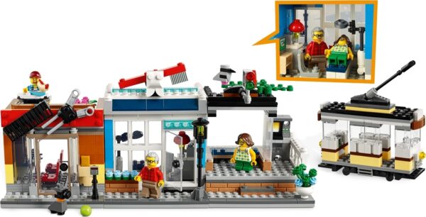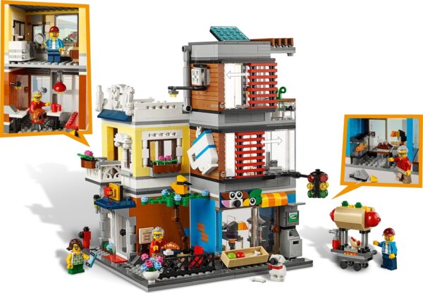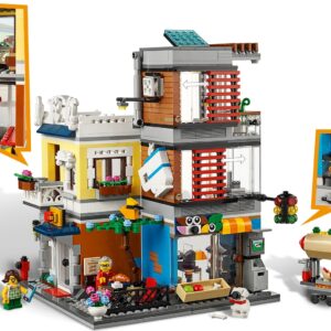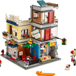 Kids can enjoy creative play with the LEGO® Creator 3in1 31097 Townhouse Pet Shop and Café, featuring a 2-level building with café, upper-level kitchen and rooftop terrace, plus a 3-level building with pet shop, apartment and rooftop terrace. This colorful townhouse includes an array of interior details that inspire creative building and comes with brick-built animal toys, including a dog, toucan and mouse. With Creator 3in1 playsets kids get 3 different build and play experiences. Build the Townhouse Pet Shop and Café and then rebuild it into a multi-story Bank or Market Street with tram. Includes 3 minifigures, all ready for downtown adventures. Enjoy 3 building opportunities with this LEGO® Creator 3in1 playset. Build the Townhouse Pet Shop and Café and then rebuild to create a multi-story Bank or Market Street with tram.
