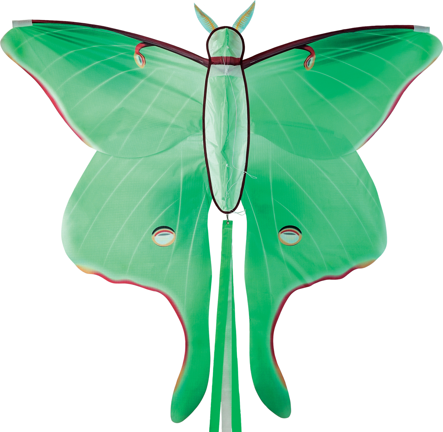 The Luna Moth Kite features a stunning printed design that is vivid when the kite is flying in the sky or when light shines through it. With long, flowing, color-coordinated tails and a sturdy body, this beautiful kite will soar with ease and bring a smile to everyone’s face who sees it!