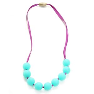 Kids? jewelry does not have to look cheap and flimsy! At Chewbeads, we realize that kids want to be just as stylish as their older siblings or parents. Our Juniorbeads Madison Jr. Necklace is a perfect blend of kid-functionality and style. The coolest part of this particular option? It features glow in the dark beads! Featuring a colorful ribbon with beads,?this necklace ties on with a breakaway clasp for easy removal and so hair doesn?t get tangled! Our?children?s jewelry doesn?t contain any BPA, phthalates or leads and metals. You can rest assured our necklaces are?both safe and adorable. Juniorbeads may also be used as a sensory necklace under adult supervision.